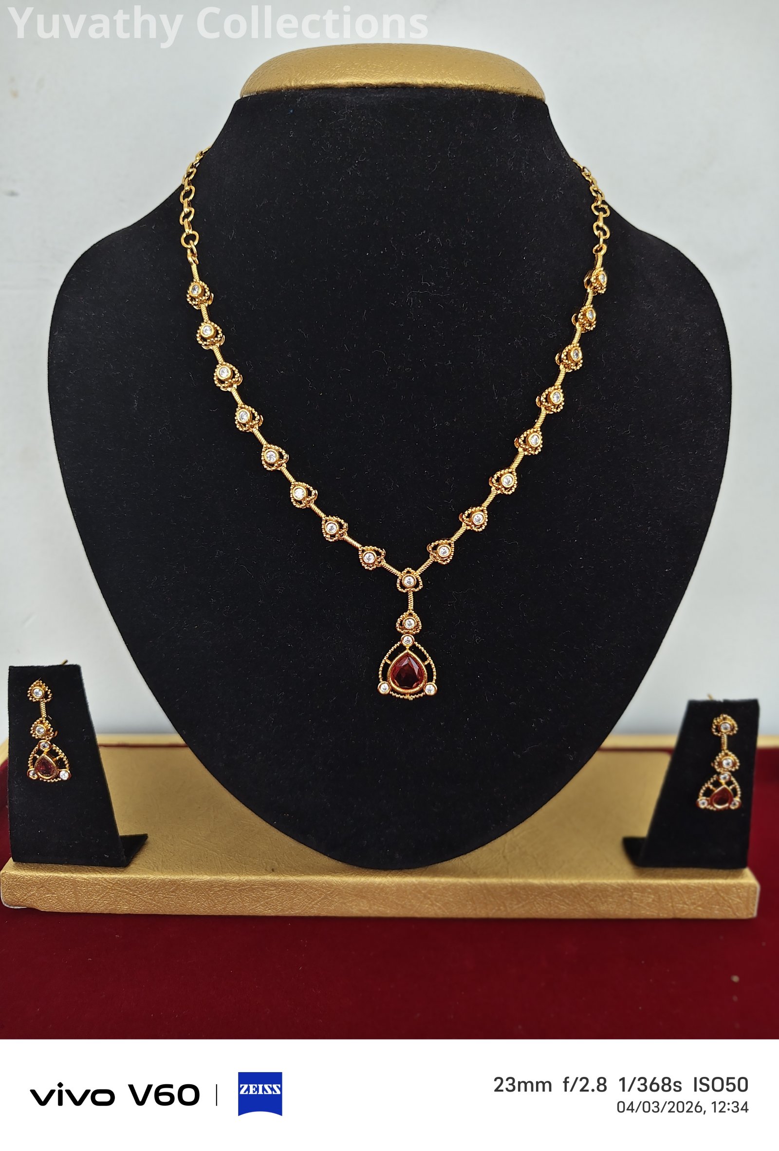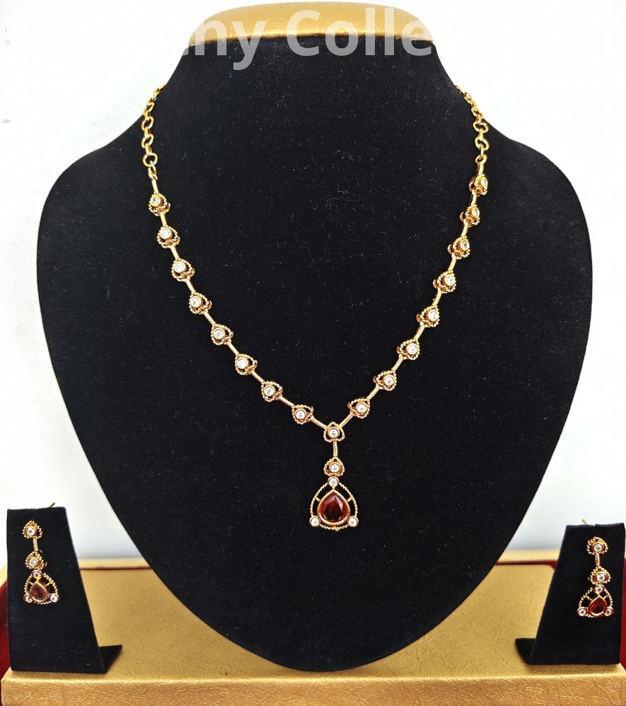 Matte finishing AD Stone Necklace White and Red Stones.
