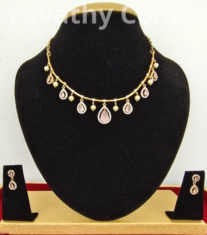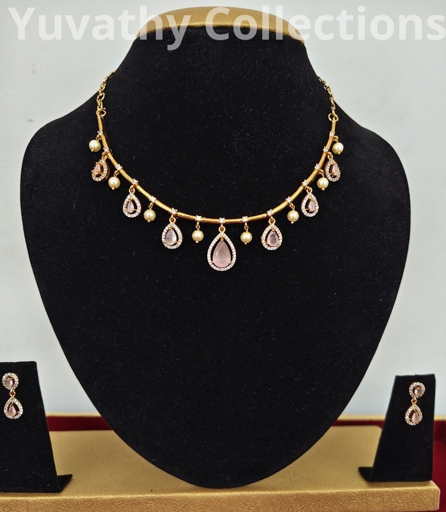 Matte finishing AD Stone Necklace White and baby pink colour stones.