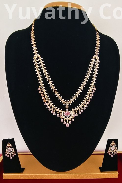 Matte finishing AD Stone Jwellery White and Baby pink colour stone with back chain.