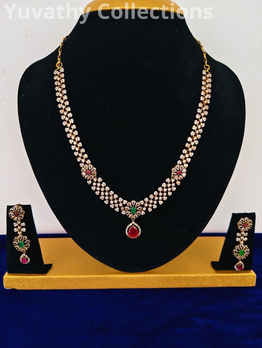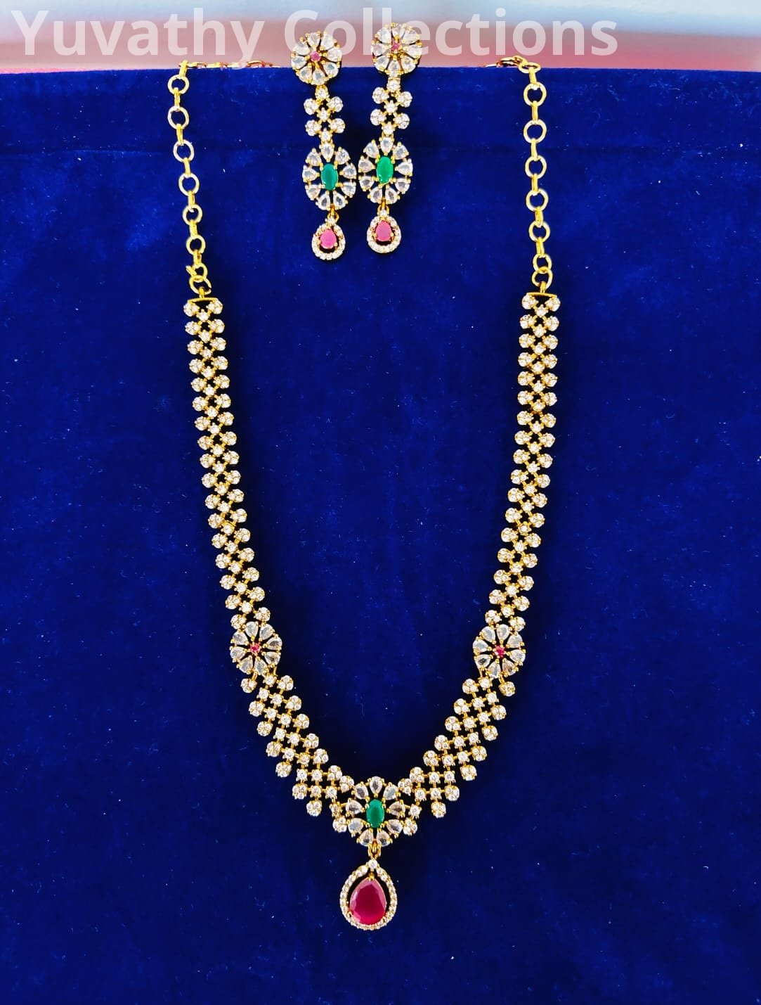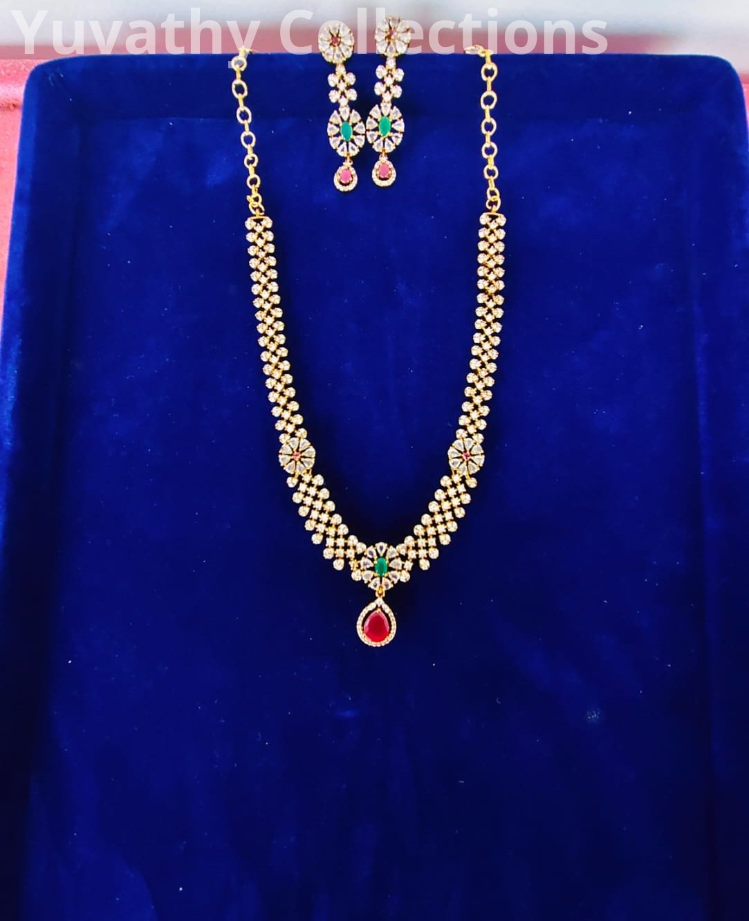 Matte finishing AD Stone Necklace White.red and green colour with back chain.