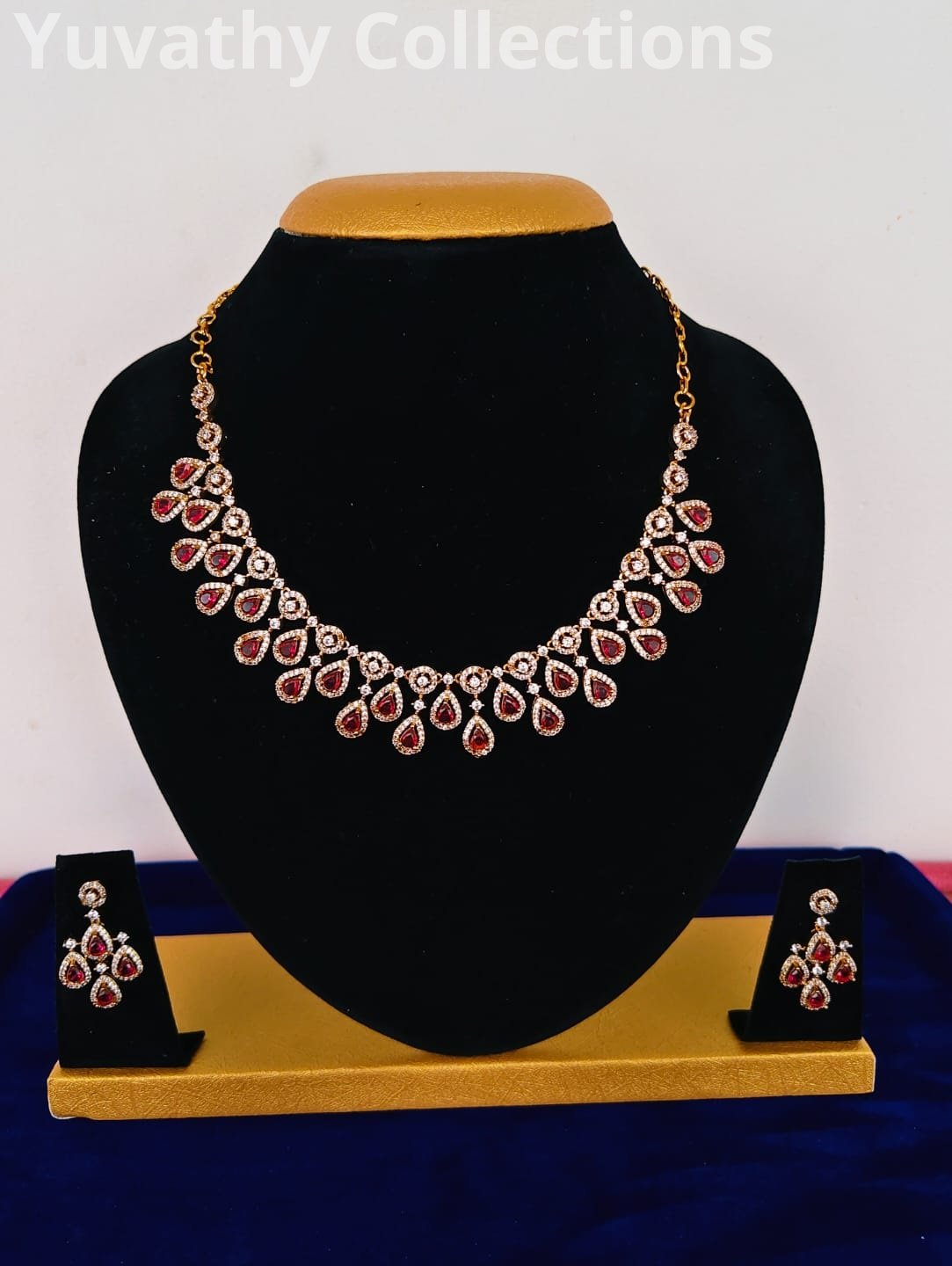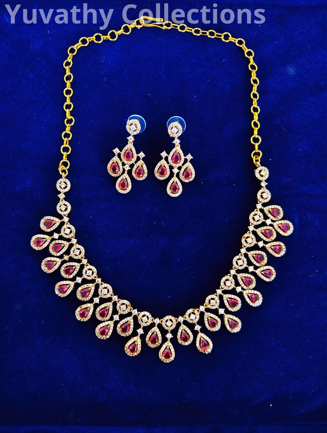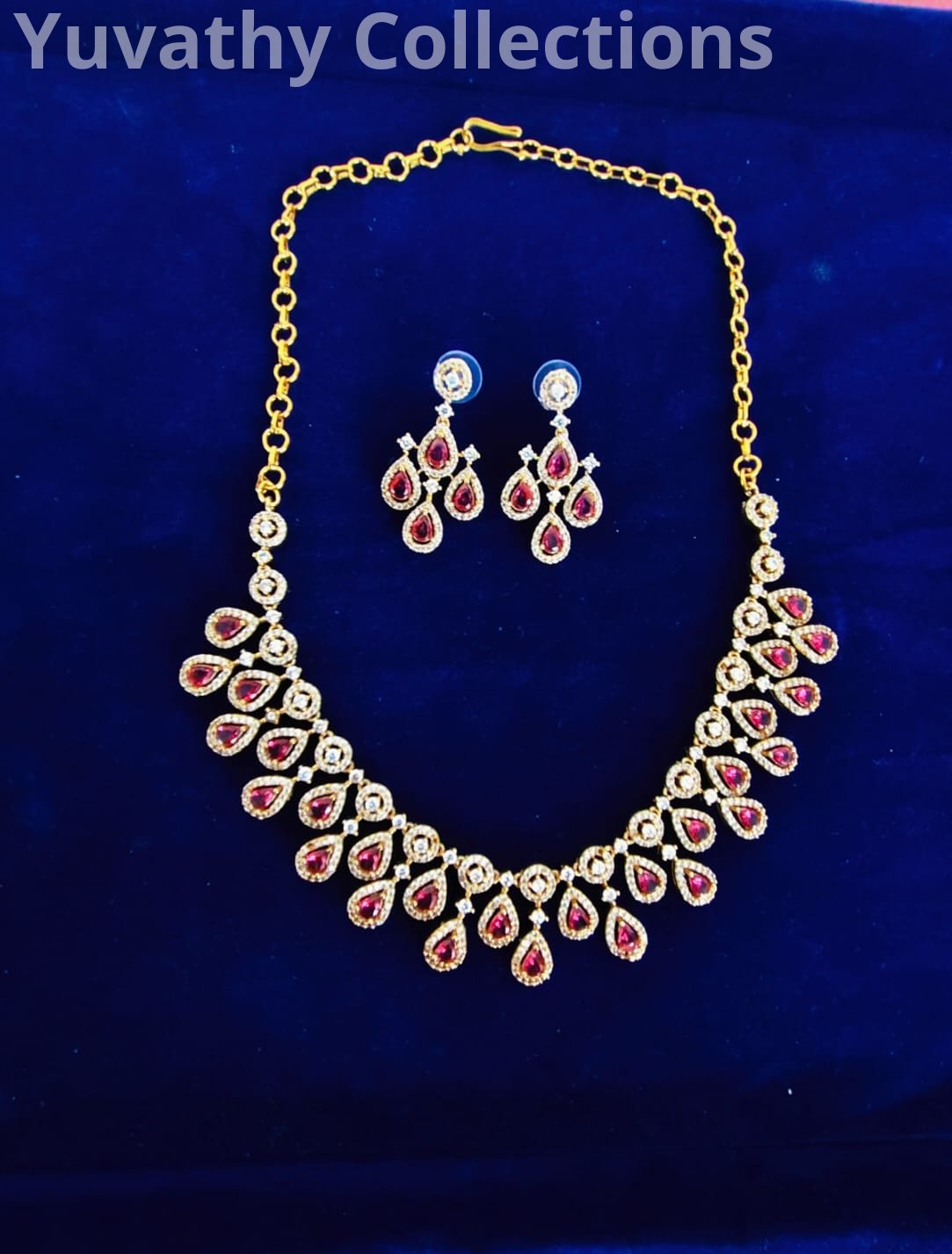 Matte finishing AD Stone Necklace Red and White Stone Jewellery with back chain.