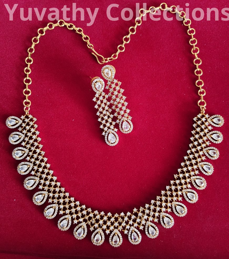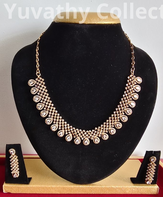 Matte finishing AD Stone Necklace Fully White Stone Necklace with back chain.