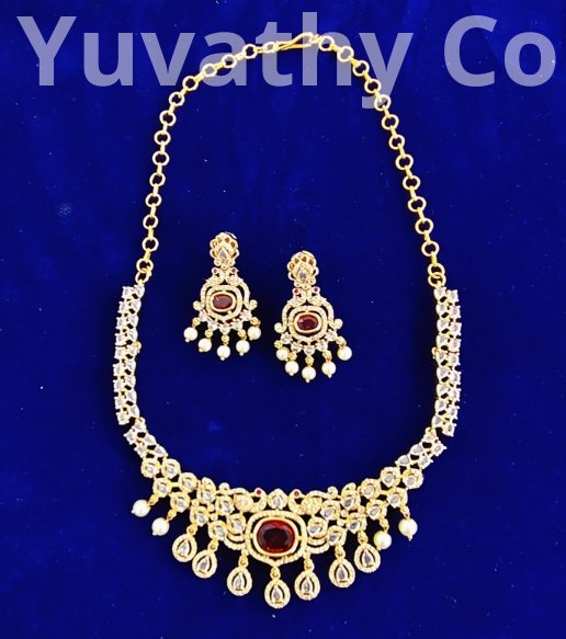 Matte finishing AD Stone Necklace White and Red Stone Necklace with back chain.