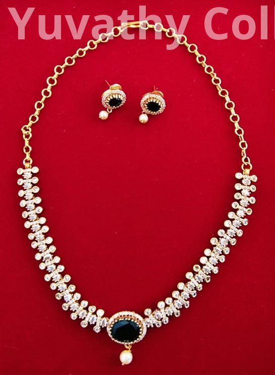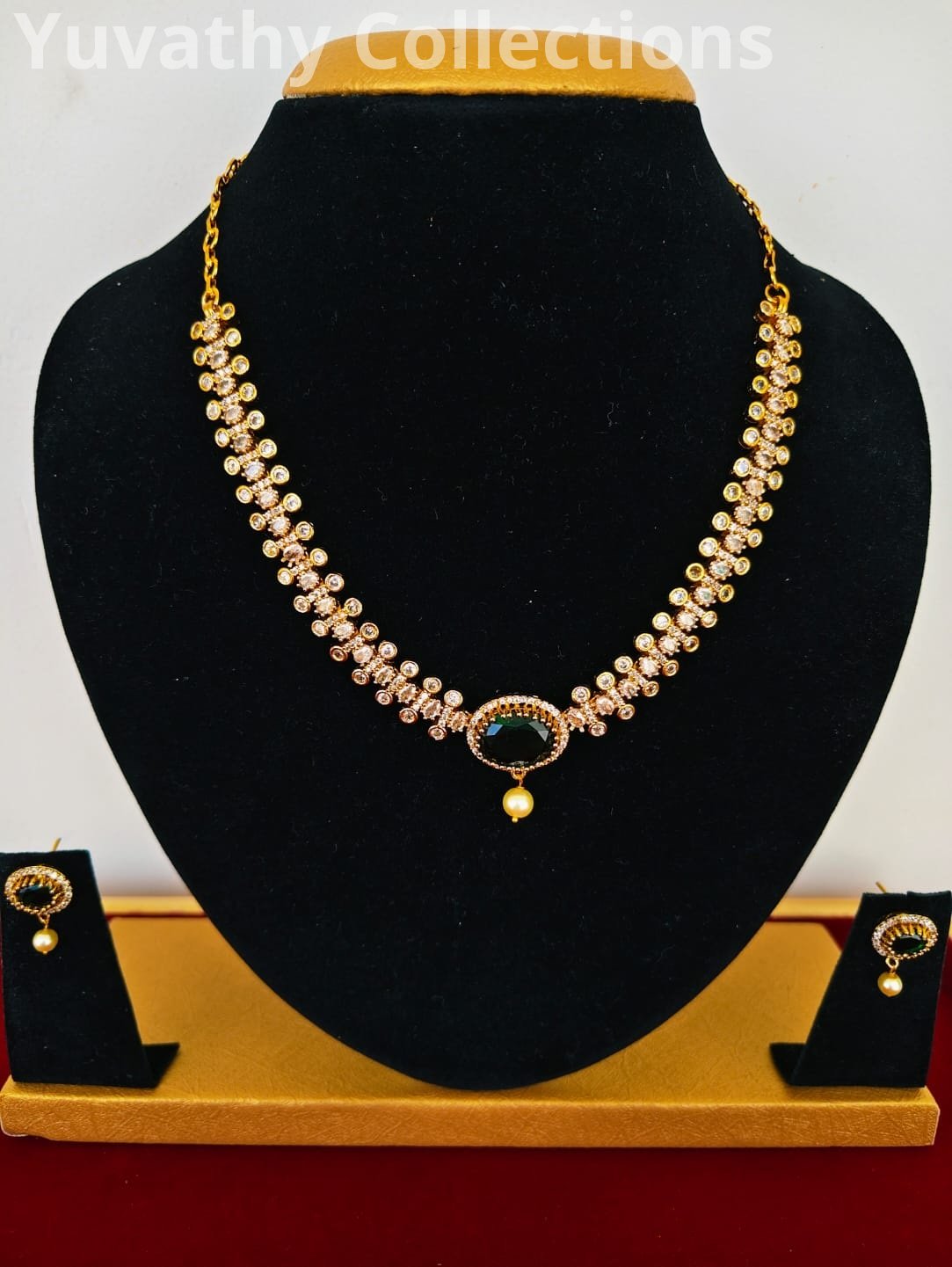 Matte Finishing Necklace with White and Green AD Stone with back chain