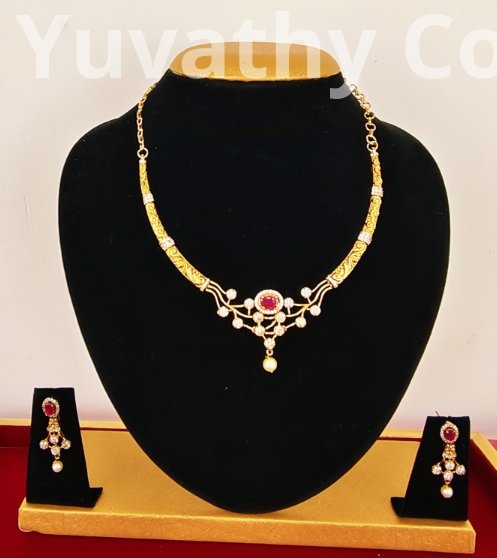 Matte Finishing AD Red and White Stone necklace with back chain.