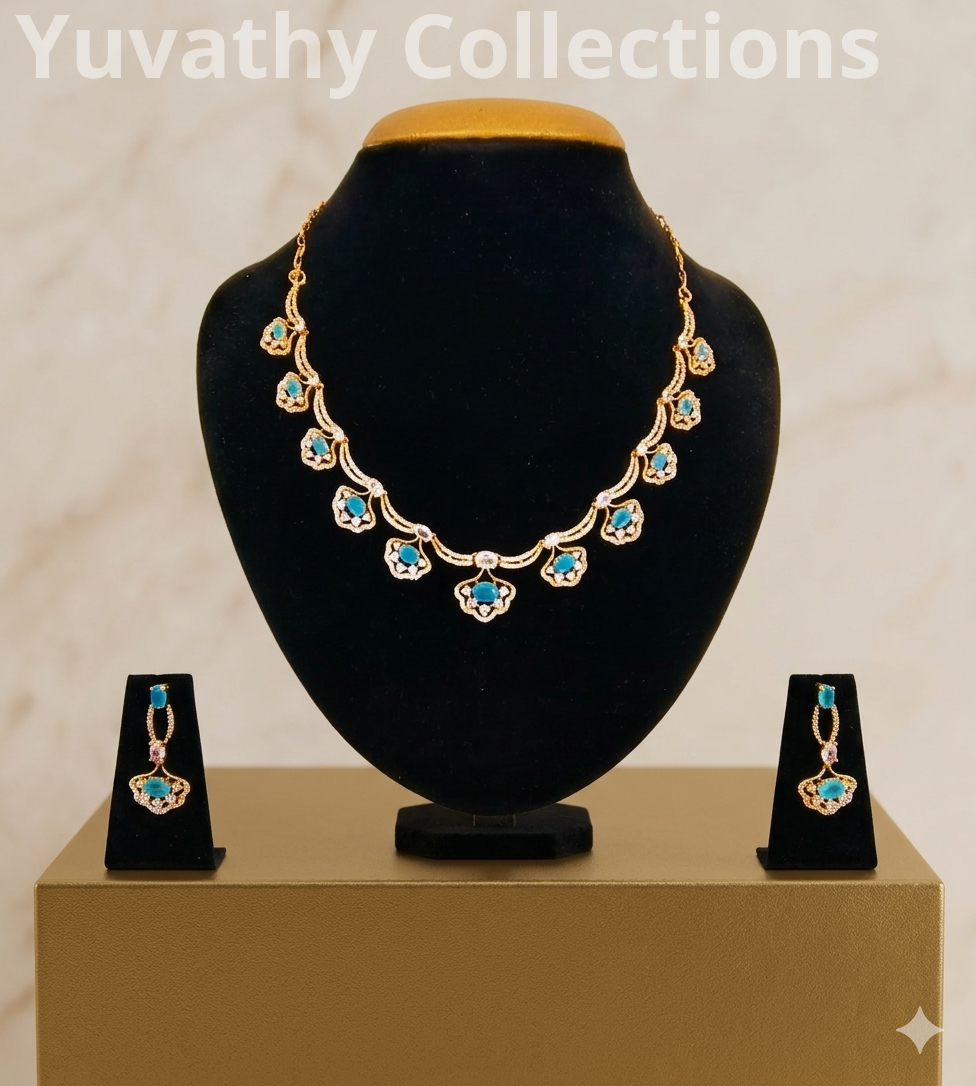 Matte Finishing Sky Blue AD Stone Nacklace with back chain.