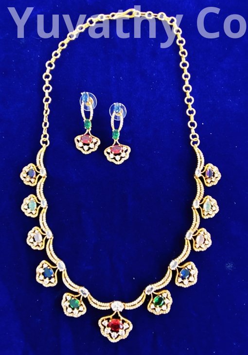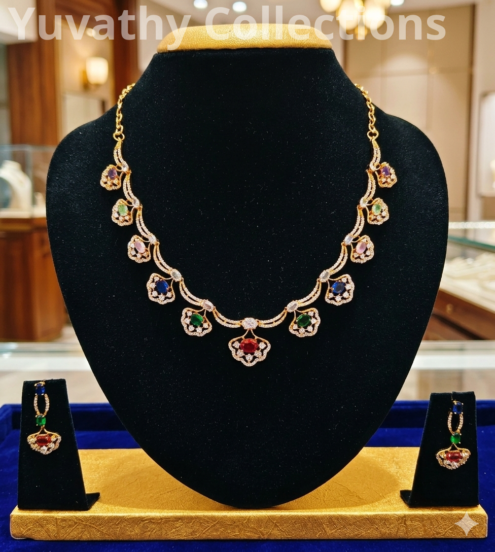 Matte finishing AD Stone Necklace White and Multiple colour stones Jewellery with back chain.