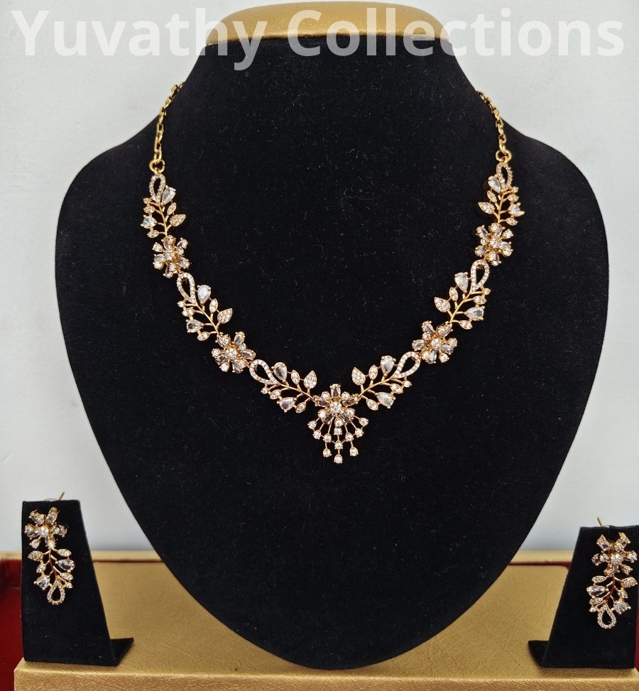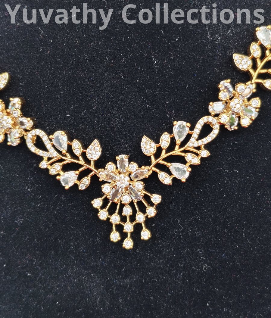 Matte finishing AD Stone Necklace Full White colour stones.