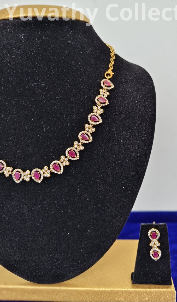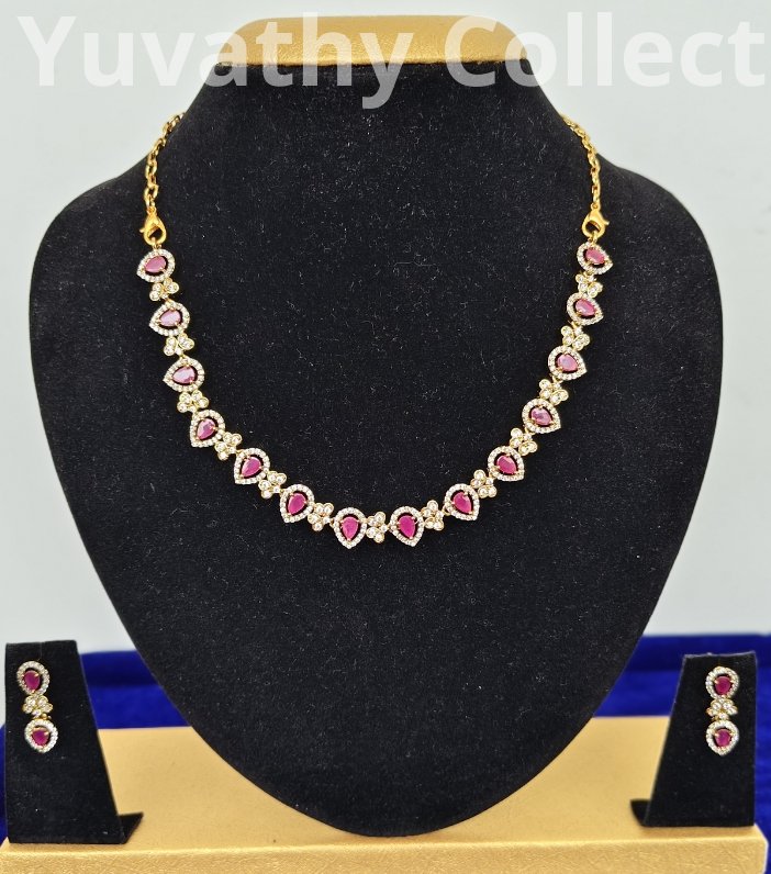 Matte finishing AD Stone Necklace White and Pink colour stones.