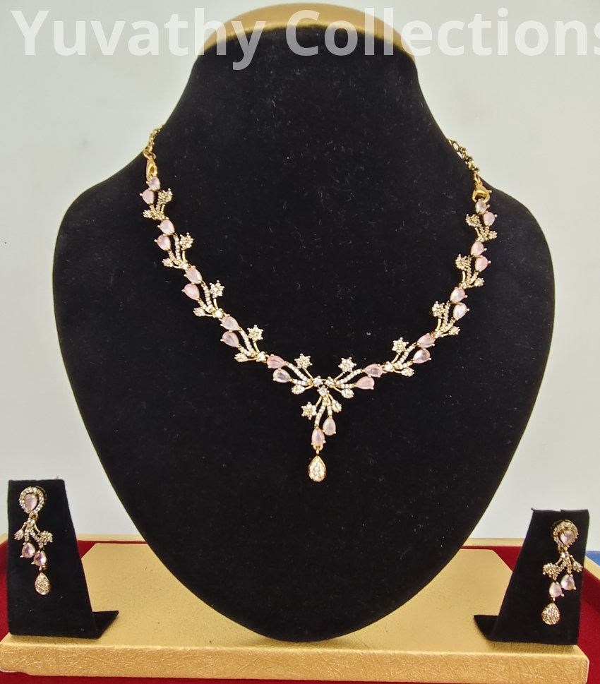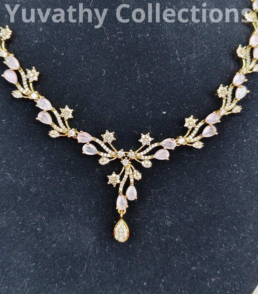 Matte finishing AD Stone Necklace White and baby pink colour stones.