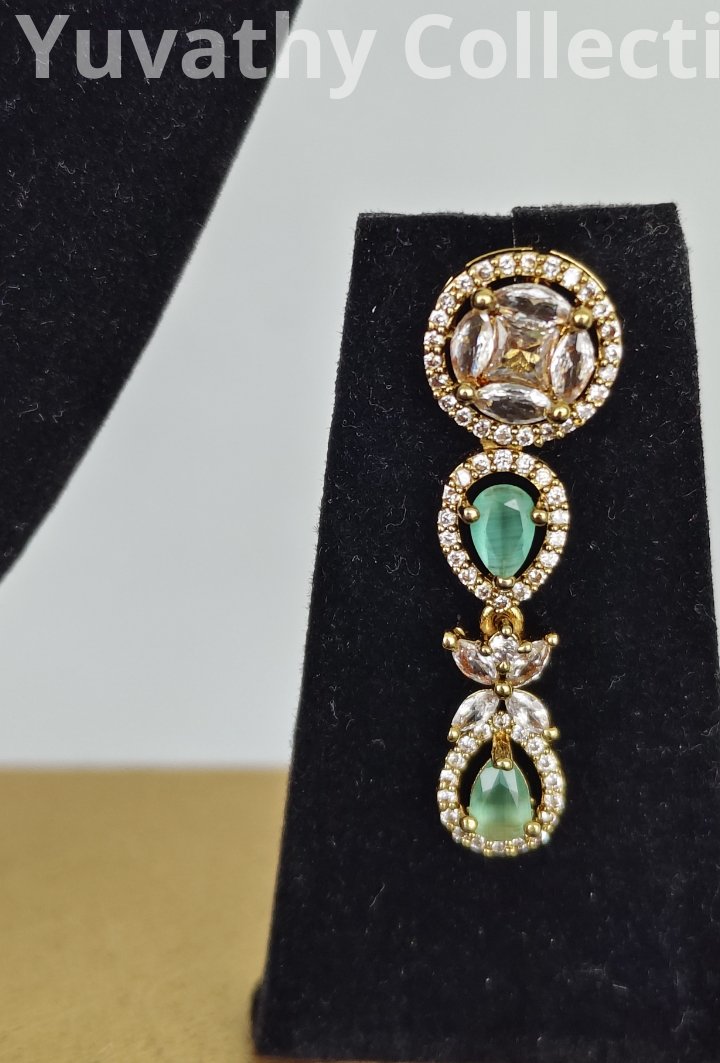 Matte finishing AD Stone Necklace White and Mint green colour stones.