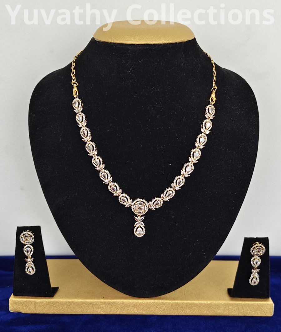 Matte finishing AD Stone Necklace Fully White colour stones.
