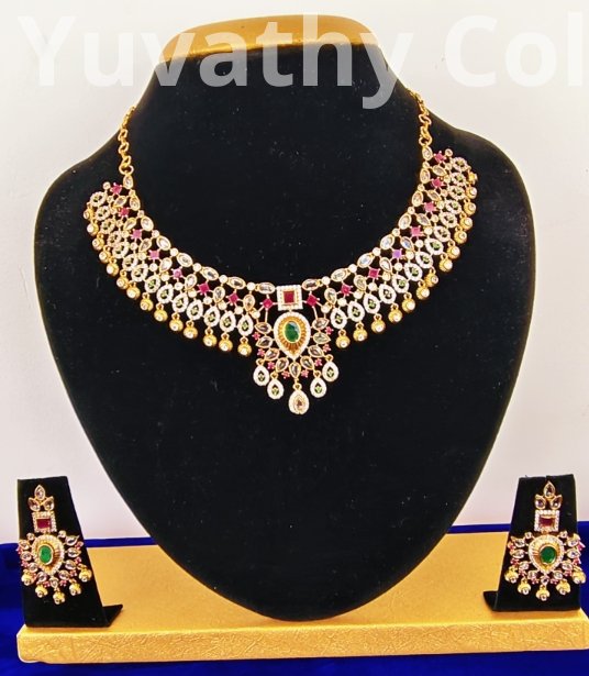 Matte Finishing Necklace with AD Stones White,Red and Green Stone with back chain.